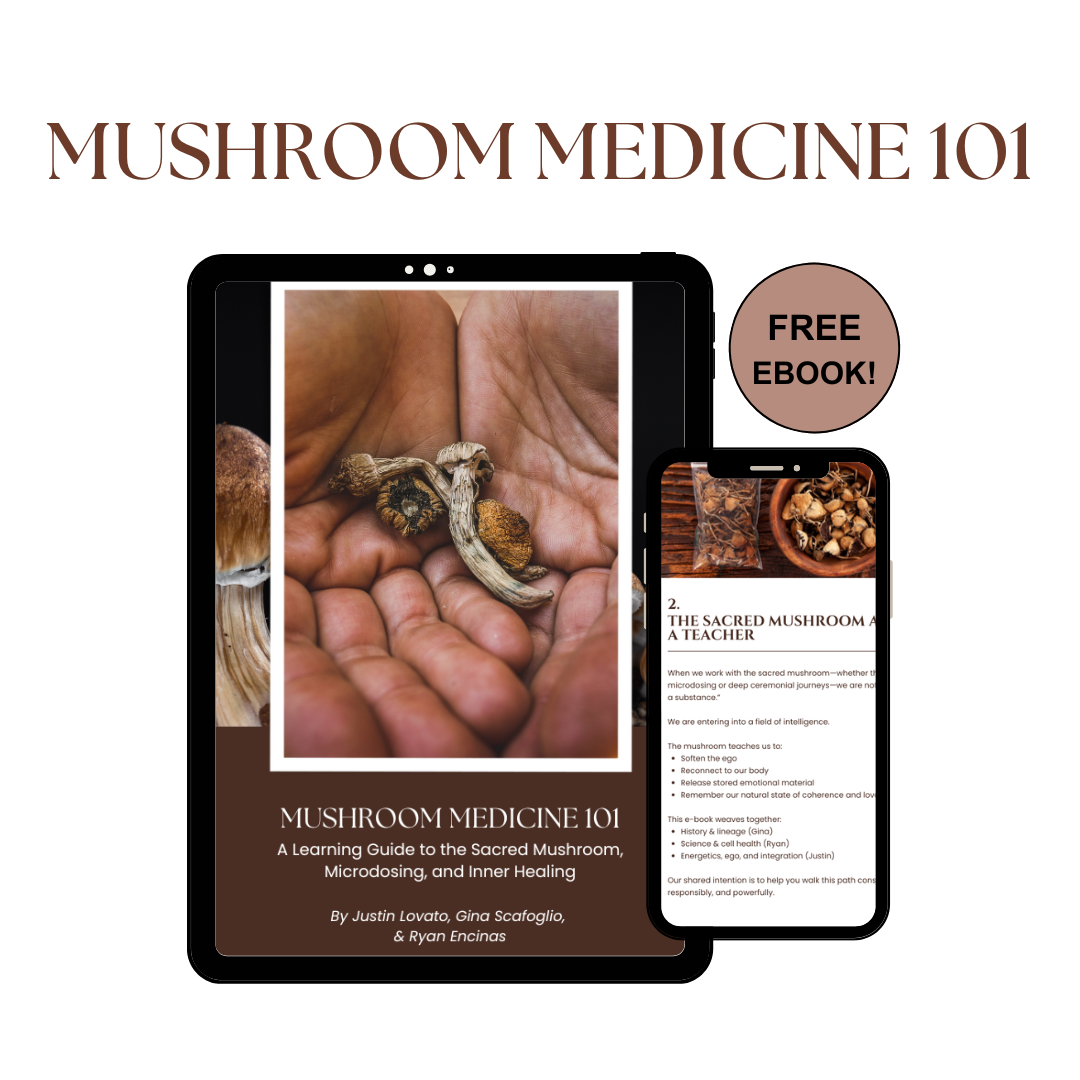 A learning guide to the sacred mushroom, microdosing, and inner healing. Download now!